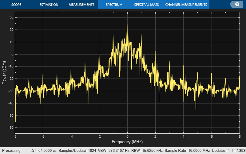 waveformInitR = bleCSWaveform(cfgObjectR); frequencyScope(waveformInitR) release(frequencyScope)