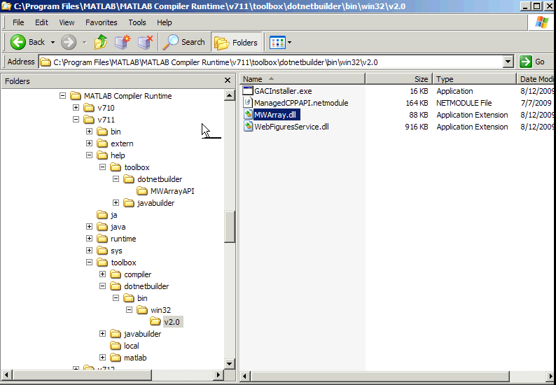 Sample Directory Structure of the MATLAB Runtime Including MWArray.dll
