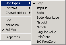 To change the response plot, select the new plot type from the Plot Type submenu. The Linear System Analyzer automatically displays the new response plot.