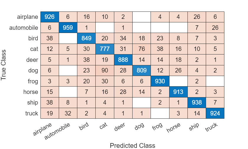 imdsTrain = imageDatastore(locationCifar10Train, ... IncludeSubfolders=true, ... LabelSource="foldernames"); imdsTest = imageDatastore(locationCifar10Test, ... IncludeSubfolders=true, ... LabelSource="foldernames"); classNames = categories(imdsTrain.Labels);