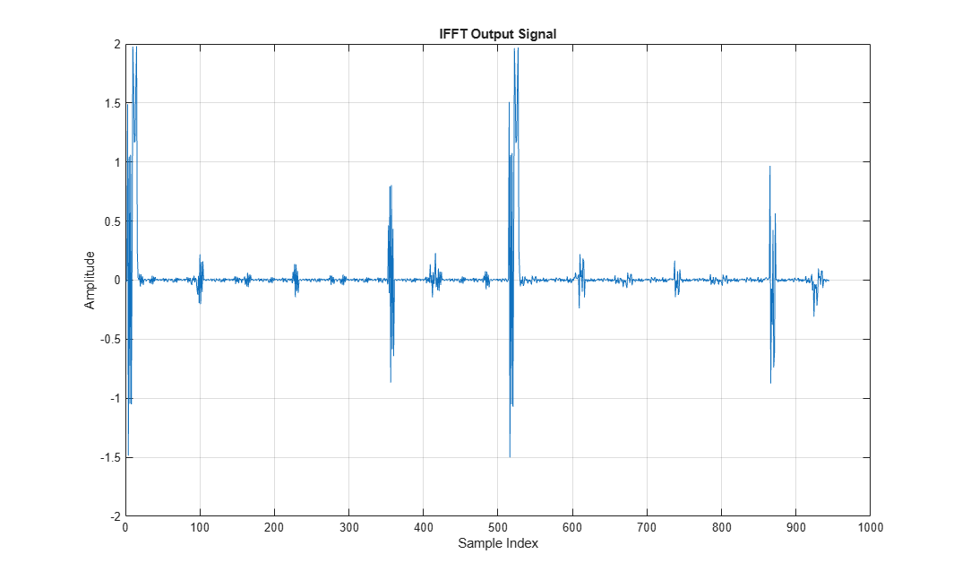 IFFTOutput = squeeze(dataOut(:,:,validOut)); figure; plot(real(IFFTOutput(:))); xlabel('Sample Index'); ylabel('Amplitude'); title('IFFT Output Signal'); grid on;