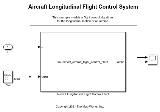 Open the fmuexport_aircraft_flight_control_plant example model.