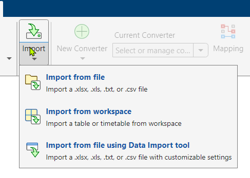 Click the Convert button on the app toolstrip to convert the imported table into a converted table. Note that: