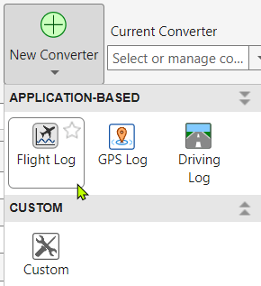 Click the New Converter button and choose Flight Log to interpret a common flight log.