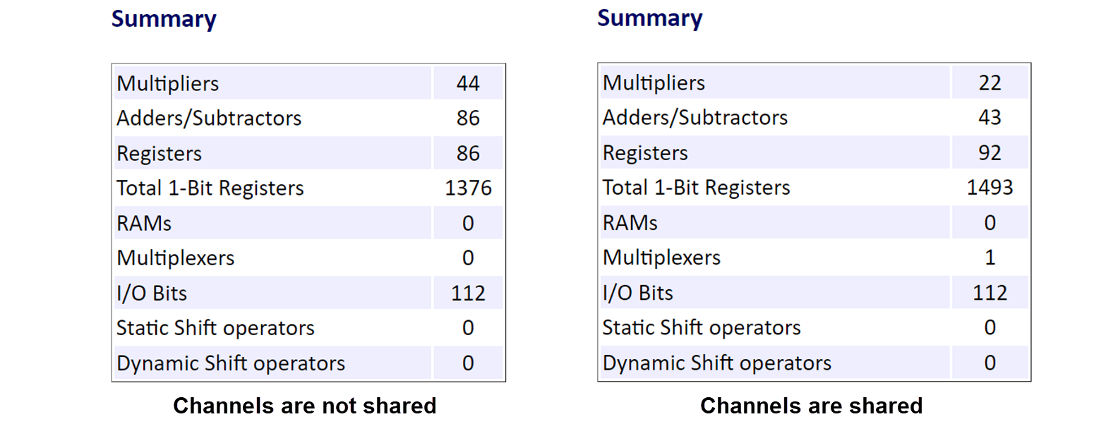 Using the streaming optimization halves the amount of required Multipliers and Adders/Subtractors and requires a clock rate that is two-times faster than the design base rate.