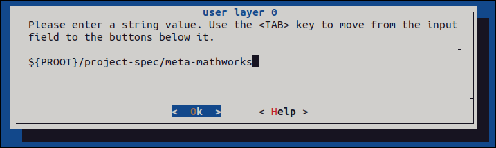 d. Sets the meta-mathworks layer as a user layer in the PetaLinux project by using the PetaLinux configuration menu: