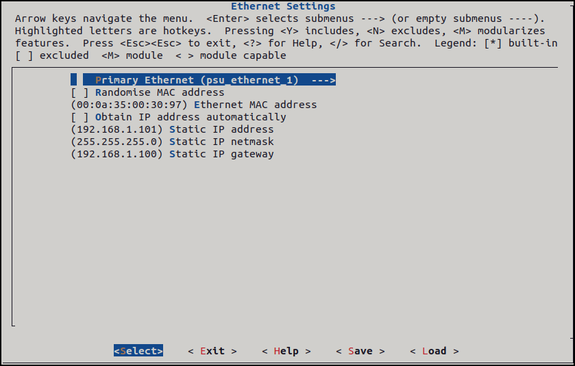 In the PetaLinux configuration menu, under System AUTO Hardware Settings you can change the memory, Ethernet and serial settings. By default, the PetaLinux project uses the IP configuration settings of the processing system of your Xilinx Vivado design.