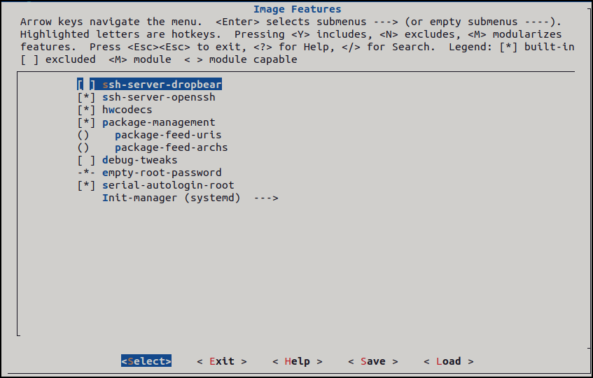 4. Select the kernel drivers you want to add to the Linux image, click Save and then click Exit. The configuration menu creates a new CFG file and adds this file to the linux_xlnx_%.bbappend file.