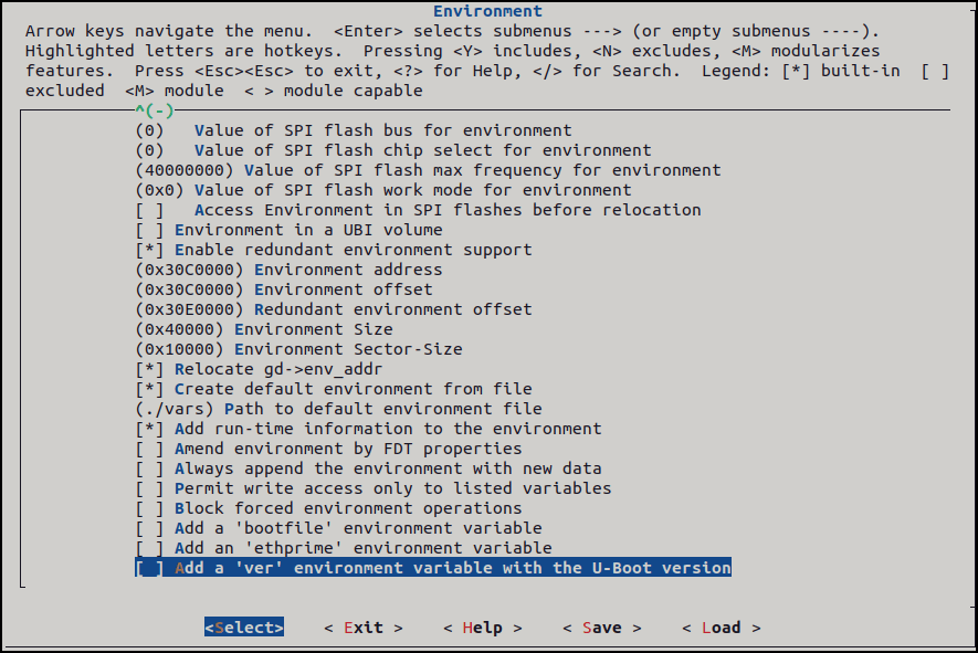 Navigate to the Environment settings and modify the settings to save the boot environment in QSPI memory.