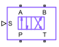 This block is a composite component that comprises of multiple instances of the Orifice (MA) block. Refer to the Orifice (MA) block for more details about valve parameterizations and block calculations. In some configurations, this valve resembles a 3-way valve. To set additional flow paths when the spool is in the neutral position, see the 4-Way 3-Position Directional Valve (MA) block.