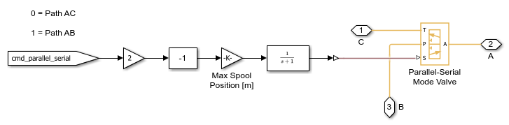 There are two identical parallel-serial mode valves that act in unison to control whether the coolant loop operates in parallel mode or serial mode. One of the two valves is shown below. When ports A and C are connected, it is in parallel mode. The two coolant loops are separated with their own coolant tanks and pumps. When ports A and B are connected, it is in serial mode. The two coolant loops are joined together and the two pumps are synchronized to provide the same flow rate.