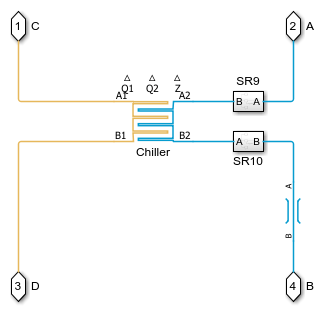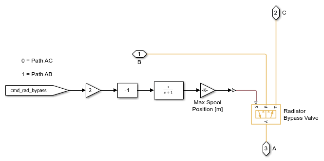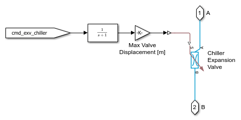 Two orifices operating in the opposite manner model the 3-way valve. In cold loop mode, the valve directs refrigerant to the chiller and expansion valve to cool the batteries and cabin. In heat pump mode, the valve normally directs the refrigerant to bypass the chiller and evaporator and return to the compressor. However, if the coolant is sufficiently warm, the valve directs the refrigerant back to the chiller to recover some heat from the coolant before returning to the compressor. This rerouting improves the heat pump mode cycle efficiency by reducing the pressure difference that the compressor needs to maintain.