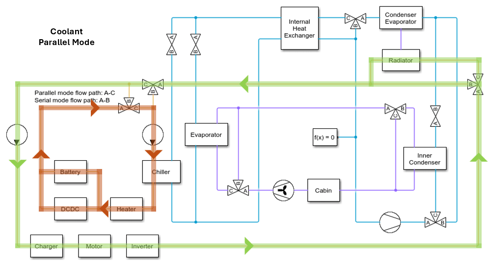 For more information on electric vehicle thermal management without a heat pump, see Electric Vehicle Thermal Management.