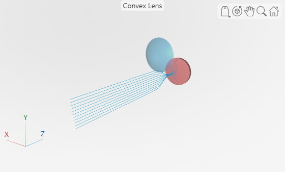 Trace rays in the optical system to add to the visualization. Observe that rays contains three ray bundles.