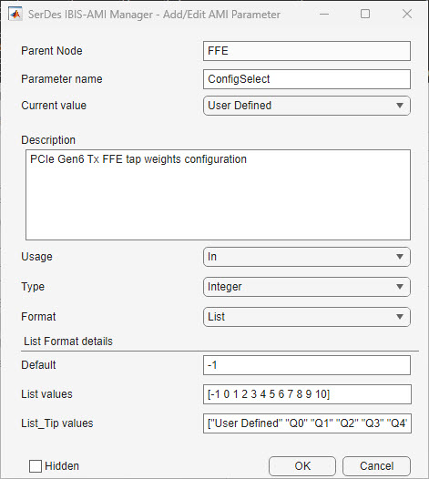 %FFEParameter.ConfigSelect; % User added AMI parameter from SerDes IBIS-AMI Manager