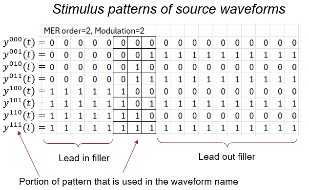 Note that for NRZ, the number of required waveforms doubles with each increase in MER order. Also, if the circuit simulator is perfectly time-invariant, you can obtain the y001(t)source waveform by simply delaying the y011(t)waveform, rather than running a separate simulation. Similar manipulations can help reduce the circuit simulation workload when you explore higher-order MER analysis.