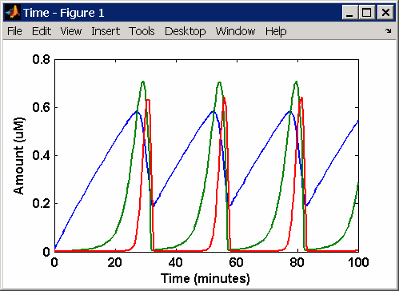 openExample('simbio/GoldbeterWithReactionsSimBiologyExample')