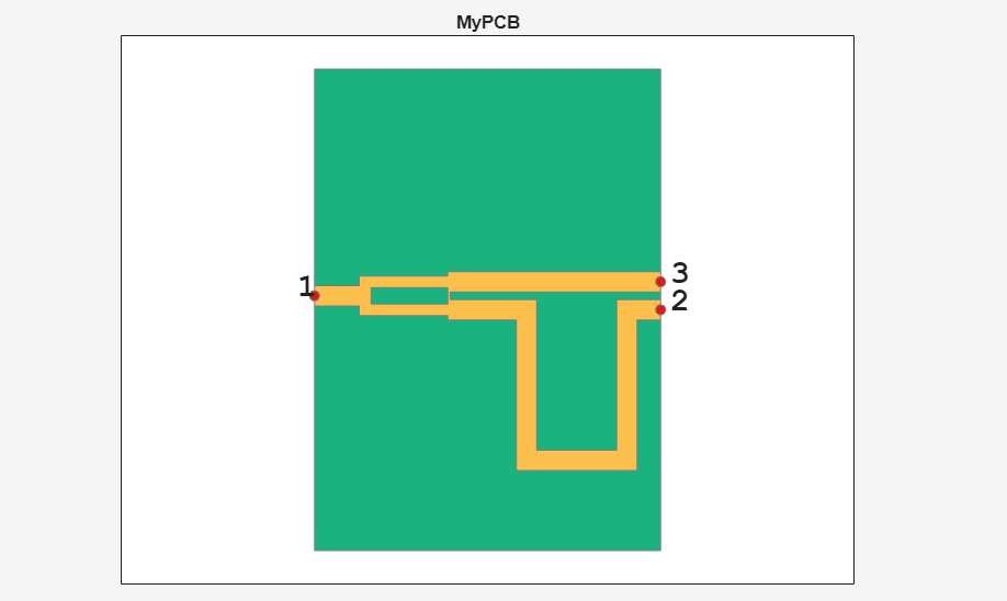 This example shows how to build the phase shifter using a distributed PCB element, and combine it on the PCB together with the Wilkinson splitter. To integrate the phase shifter in the system-level model, you must perform an EM analysis and determine its S-parameters.