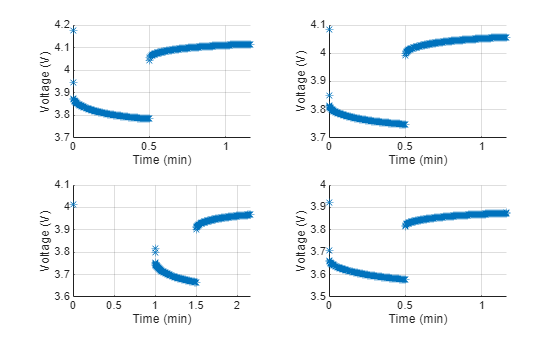 You then estimate the parameters for a battery ECM that best match the terminal voltage response of the battery. The key outputs from the parameter estimation process are 1-D, 2-D, or 3-D parameter look-up tables. You can use these tables for control, as part of battery management system (BMS) algorithms, or for simulation, as parameters for the Battery Equivalent Circuit block.