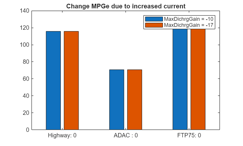 Increasing the allowed discharge current by 70% enables a 0–60 mph time under 6 seconds. To offset the higher energy use during acceleration and maintain MPGe, you can reduce the regen lower limit from 5 to 2.5 to expand regenerative braking.