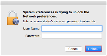To edit the network preferences, you must have administrative privileges. If you are already logged in as an administrator, you can skip the steps in this section.