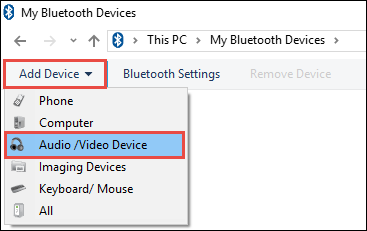 3. In the top-left corner, click Add Device and select Audio /Video Device from the menu.