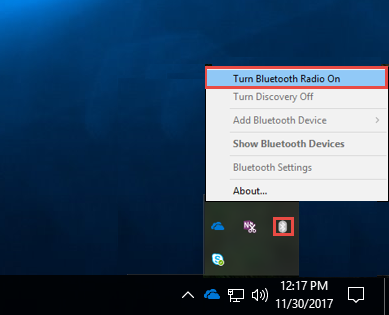 2. Select Turn Bluetooth Radio On from the menu.
