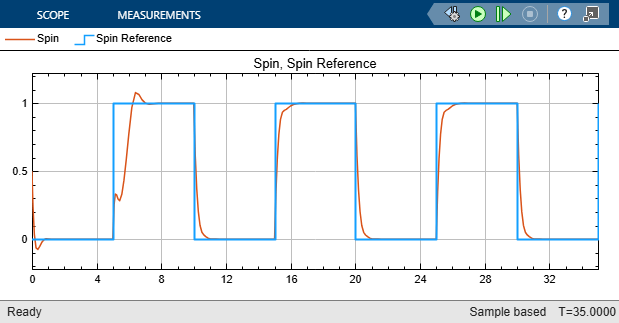 View the controller performance by comparing the spin response and spin-rate response to their respective reference signals.