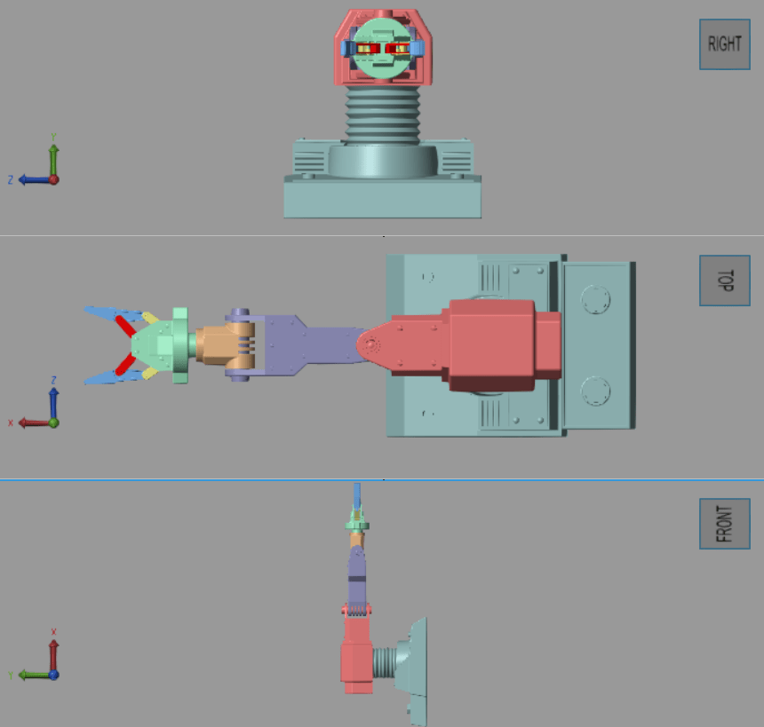 This example shows how to specify views of multibody models using the Multibody Explorer. In the visualization pane, you can interactively examine the body geometries, mechanical connections, and trajectories of a multibody model in 3-D space. To view model details, you can adjust the views of a model. You can change the view by:
