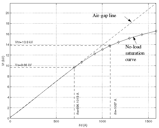 For example, without saturation, the figure shows a typical curve. ifn is 1087 A and Vn is 13800 V RMS line-to-line, which is also 11268 V peak line-to-neutral.