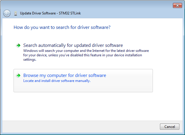 dpinst_amd64.exe, and follow the installation steps.Right-click Device Manager > Other Devices > ST-Link Debug and then click Update Driver Software. Select the option Browse my computer for driver software. In the Browse window, specify the path of the folder that you have unzipped, for example,