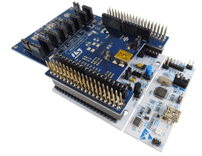 Connect the X- Nucleo-CCA02M2 shield directly on the Nucleo-F401RE board.