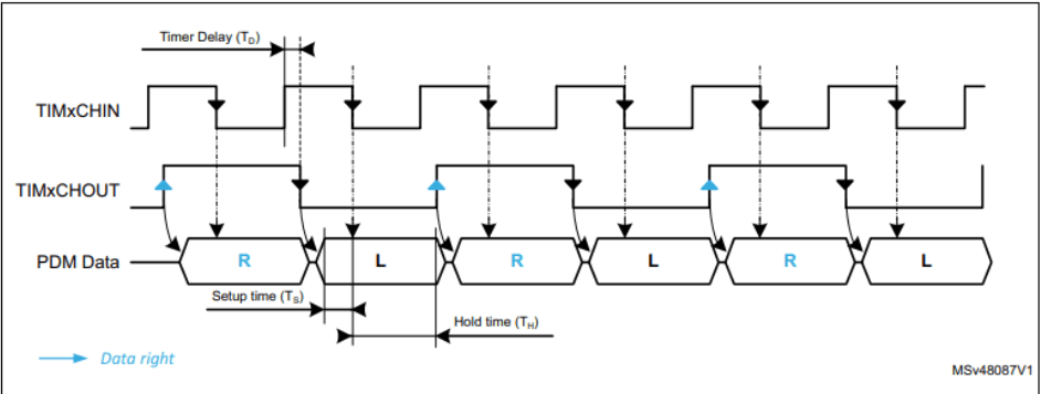 This model uses a timer module which is used to divide the I2S clock by 2. This division allows for one microphone to sample on the falling edge (left channel) while the other on the rising edge (right channel). Consequently, the I2S peripheral is able to alternately capture data from the left and right channels on the subsequent falling edges. The frequency of the clock is specifically doubled relative to the audio sampling rate to maintain this alternate sampling scheme, ensuring that both audio channels are synchronized and accurately represented in the captured audio stream.