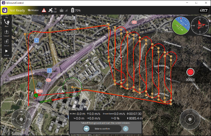 Try running complex missions from QGC. A sample survey mission trajectory is shown here.
