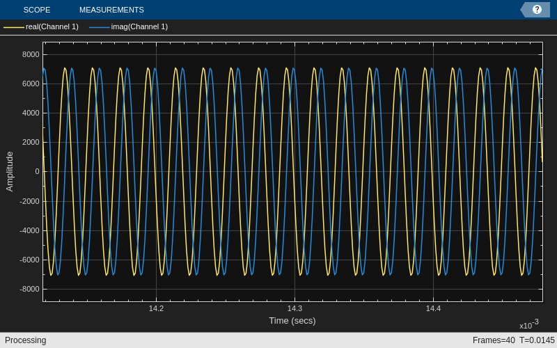 comm.SDRuReceiverSystem object outputs a matrix signal, where each column is a channel of data with a fixed length.